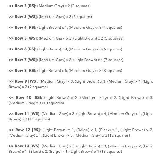 Written pattern. It is a row-by-row pattern, with C2C instructions in text format